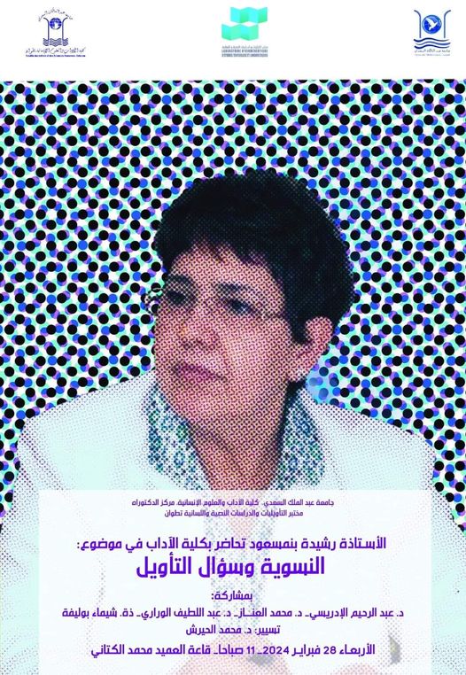 نظّم مختبر التأويليات التابع لكلية الآداب والعلوم الإنسانية بتطوان، محاضرة ألقتها الأستاذة د. رشيدة بنمسعود في موضوع « النسوية وسؤال التأويل »، بمشاركة أساتذة باحثين، وذلك يوم الأربعاء 28 فبراير 2024.