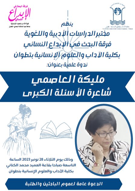 اِحتفاءً بأيقونة المغرب الأديبة مليكة العاصمي، جرت وقائع ندوة علمية بعنوان: « مليكة العاصمي شاعرة الأسئلة الكبرى »، وذلك يوم الثلاثاء 28 نونبر 2023، بكلية الآداب والعلوم الإنسانية تطوان.