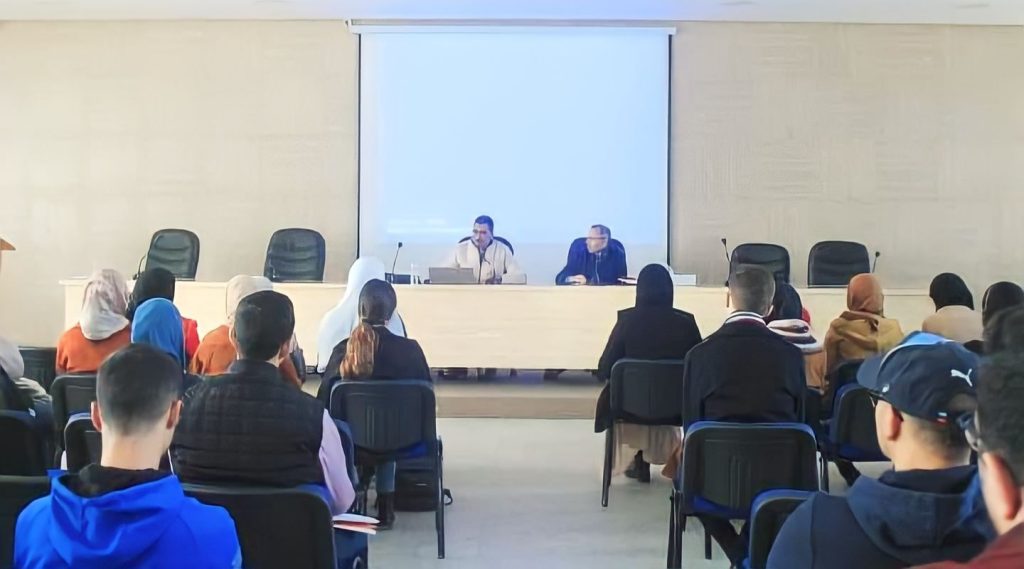أثناء المحاضرة في موضوع: « قضايا منهجية لإعداد البحث الجامعي وتجويده » لفائدة الطلبة الباحثين، 29 دجنبر 2022.
