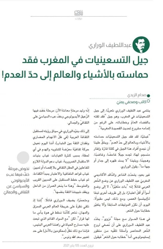 حاوره: صدام الزيديمجلة نزوى، يناير 2